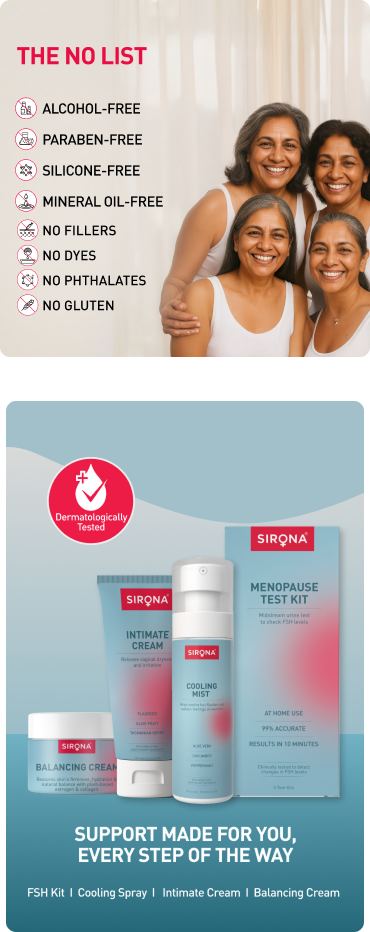 Solution: Sirona Intimate Cream is a gentle, hormone-free formula that provides comfort and hydration to intimate skin. It calms irritation and maintains the pH balance of your intimate area.
