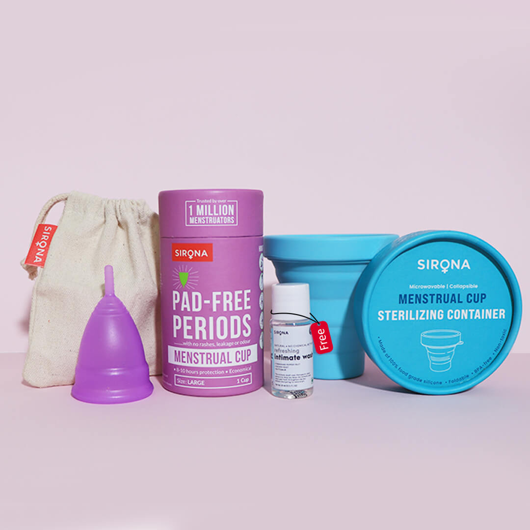 Includes FDA Approved Menstrual Cup (Large) | Microwave Sterilizing Container | Intimate Wash (15ml)
