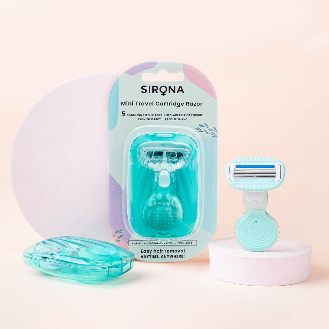 Sirona Mini Travel Cartridge Razor with a free travel case is a travel kit essential. You can use the razor until the blades wear out (15-16 shaves) and then simply replace the cartridge to continue using.