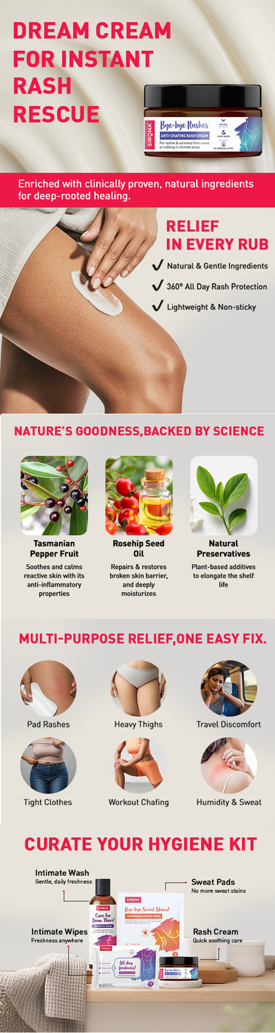 Sirona Natural Anti-chafing Rash Cream helps in soothing rashes in your intimate