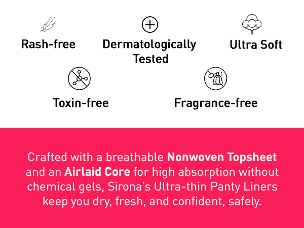 As antimicrobial panty liners, these keep infections at bay, saving you from itching and irritation. With a cottony-soft base and super-thin width, Sirona Panty Liners don't lead to rashes or visibility under clothes.