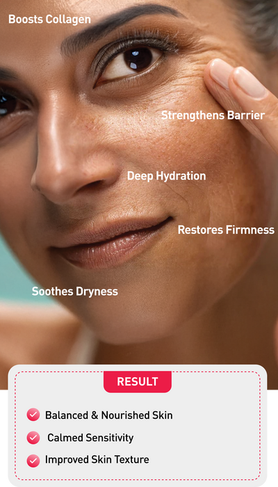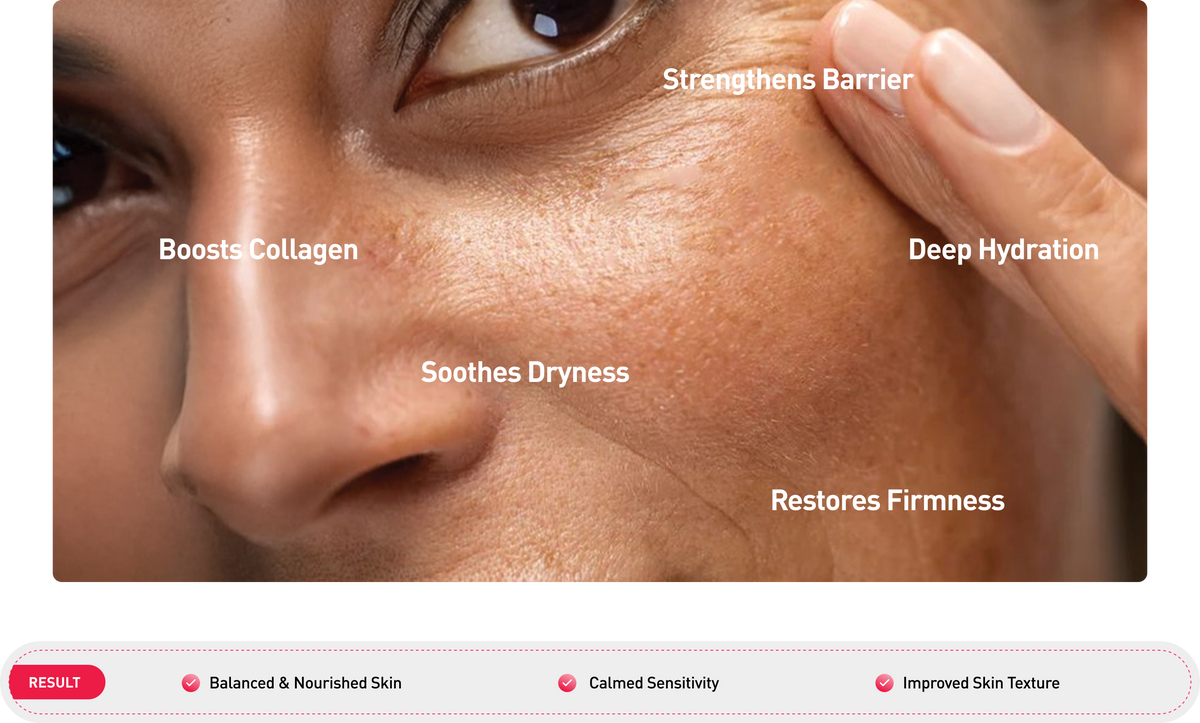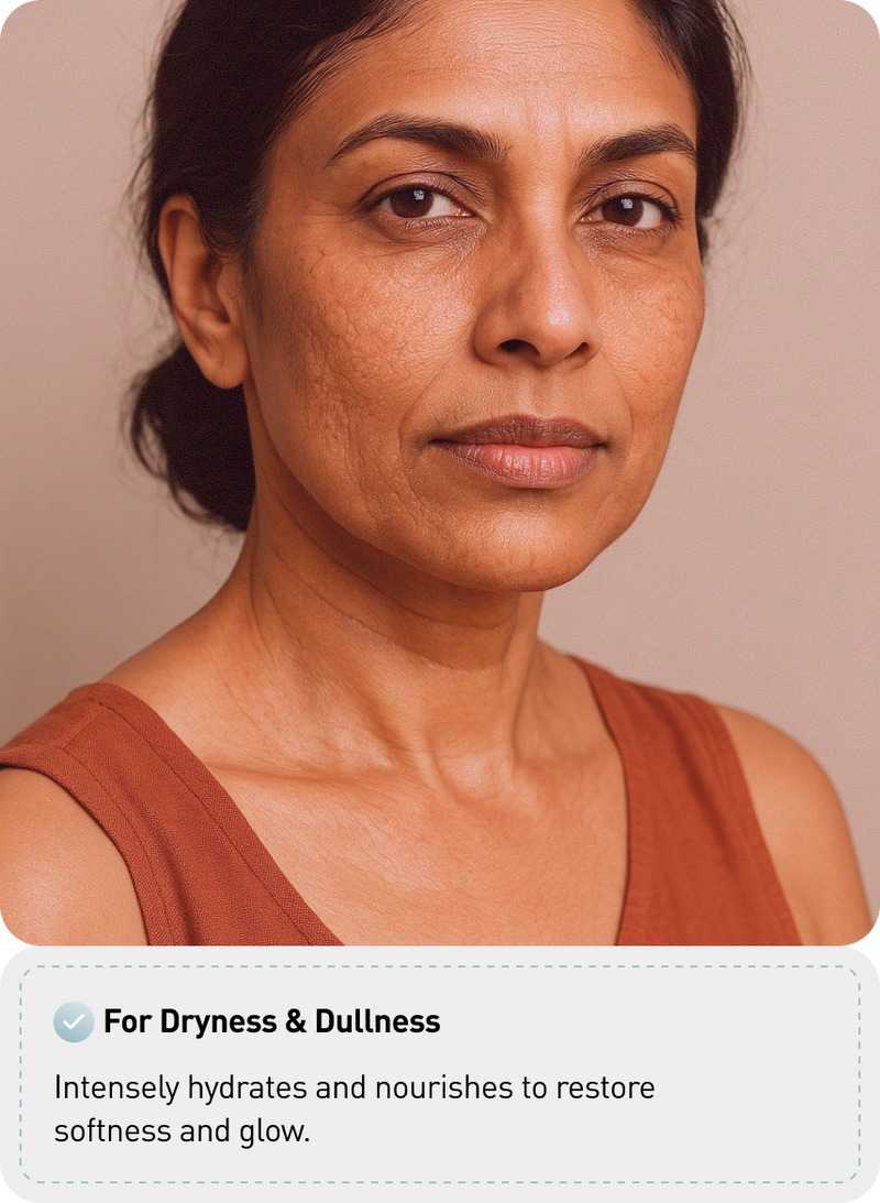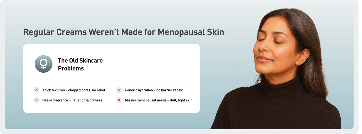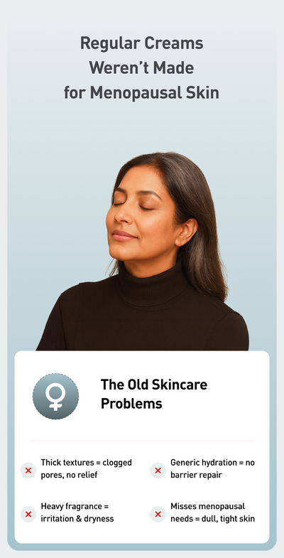 Problem: Hormonal shifts during menopause can cause skin dryness, sensitivity, dullness, and loss of firmness.