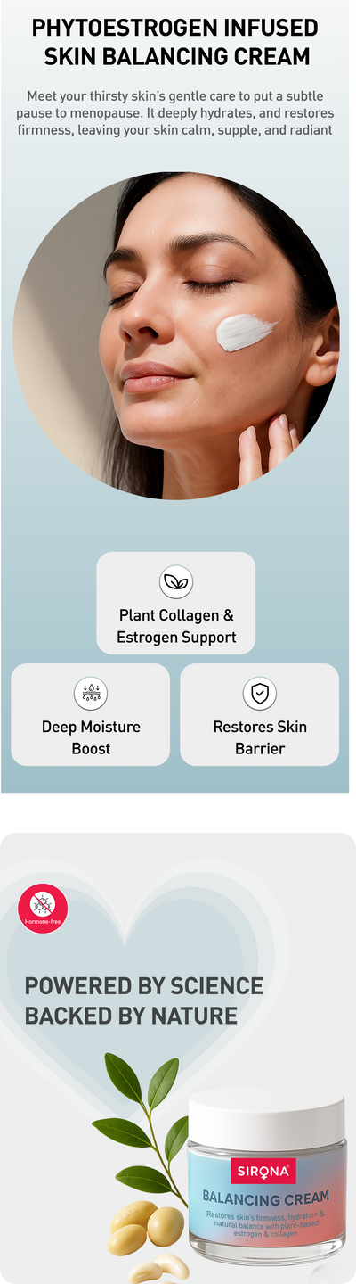 Hormonal changes during perimenopause and menopause can make your skin feel dry, dull, and sensitive. Sirona’s Balancing Cream is crafted to restore your skin’s natural vitality during this transition.