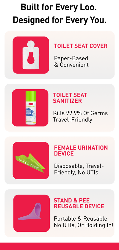 No more squatting, hovering, or holding back. This kit is designed to protect you from germs, UTIs, and bad odour in public restrooms. The Toilet Seat Covers are waterproof, paper-based, and disposable for instant seat protection. The Toilet Seat Sanitiser spray kills 99.9% germs in seconds while masking unpleasant odour. For stress-free urination, the disposable funnels and the portable & reusable Stand & Pee device let you stand and pee anywhere, from flights and stations to outdoor festivals — without touching unhygienic surfaces. Compact, travel-friendly, and pregnancy-safe, this kit is your hygiene backup wherever you go.